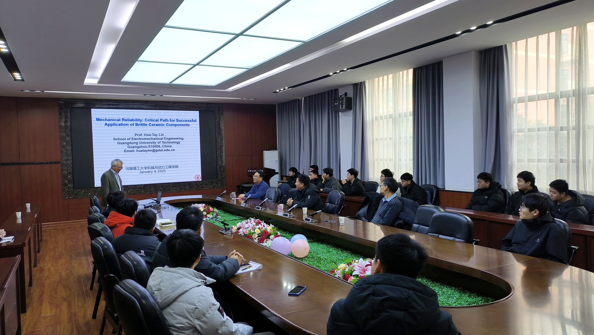 1月4日,应公司邀请,广东工业大学林华泰教授在公司217会议室作题为《Mechanical Reliability: Critical Path for Successful Application of Brittle Ceramic Components》的学术报告。报告会由学院副经理焦锋主持。